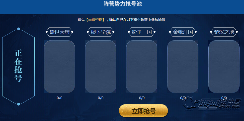 3. 前往自己所在的阵营势力进行抢号,抢号实行先到先得的原则。抢号成功即代表您已经获得体验服的资格;
