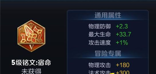 红色铭文:宿命,攻击速度+1%、最大生命+33.7、物理防御+2.3