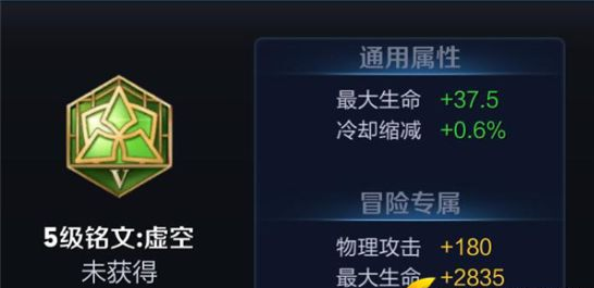 绿色铭文:虚空,最大生命+37.5、冷却缩减+0.6%