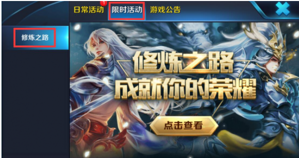 活动面板-限时活动-修炼之路,点击进入后即可进入修炼之路活动。