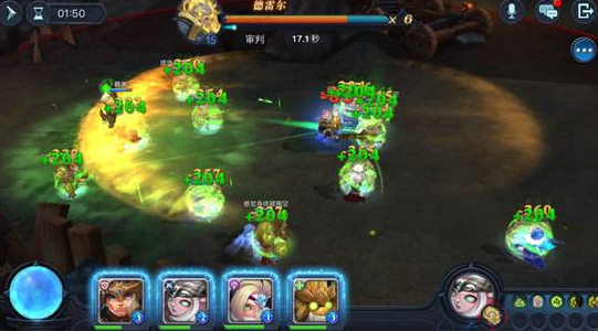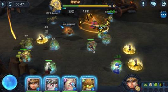 王权一召唤小骷髅时,大家有群攻英雄的赶紧放大招,三个人的大招接力放,或者当形势紧急时,三个人一起放。注意,不一定每次都需要蓄满力,有时候来不及蓄力直接点一下英雄头像释放技能也是可以的。