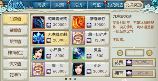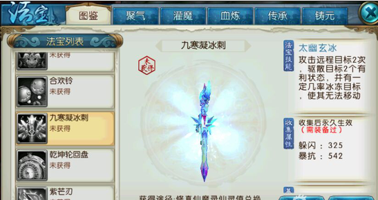 九寒凝冰刺可通过修真仙魔录获取,玩家需要使用仙灵值兑换,才能获得。 仙灵值则是通过通关修真仙魔录才能获得。