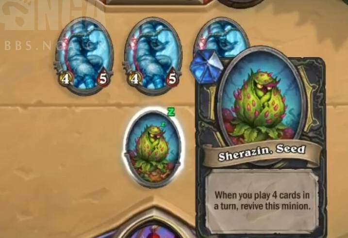 尸魔花瑟拉金:忘语,进入休眠状态,在一回合使用4张牌可以唤醒该随从