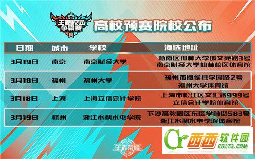 王者荣耀第三届王者校园争霸赛首站在哪些高校?王者荣耀第三届王者校园争霸赛活动介绍。无王者,不青春!王者荣耀第三届王者校园争霸赛正式打响,第三届王者校园争霸赛首站在哪些学校呢?赶快带上你的好伙伴一起参加吧!下面一起来看看小编给大家带来的王者荣耀第三届王者校园争霸赛的相关资讯。
