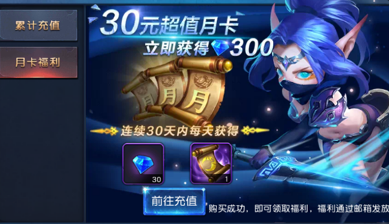 然后30天,每天30钻石和一张神谕卷轴可以获得。对于新手玩家来说,月卡还是非常值得买的
