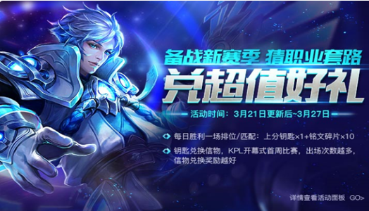 活动期间每日参与匹配或排位胜利一场可获得上分钥匙*1+铭文碎片*10