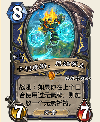 炉石传说勇闯安戈洛萨满职业橙卡怎么样,萨满职业橙卡4元素法术一览,炉石传说Hearthpwn3月22公布了萨满职业橙卡卡利摩斯原始领主,这张萨满职业橙卡有着4张衍生元素法术可以选择,玩法和卡扎库斯有点类似,勇闯安戈洛萨满职业橙卡怎么样,下面带来萨满职业橙卡4元素法术一览。