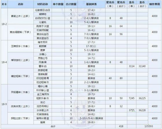 材料:跳房子·淡蓝*4, 18-1少掉落,合计星光币64 ,金币4000