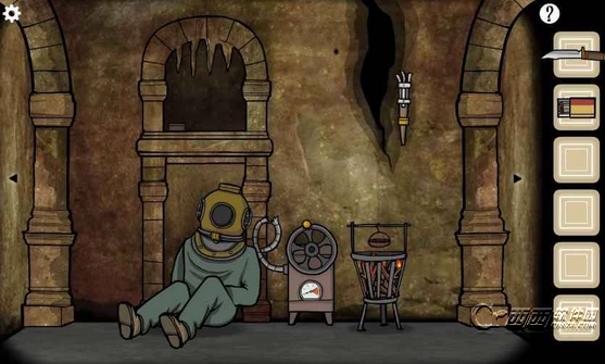 在游戏中玩家似乎是被关到到了一个海底洞穴当中,游戏中除了玩家之外,还有一个身穿着厚重的潜水服的人,看起来给人一种非常恐怖的感觉