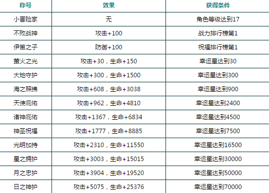多数的称号需要拥有一定数量的幸运星才能获取,而幸运星可以通过祝福玩家和被玩家祝福来获得,但是每日祝福的次数有限,根据VIP等级的提高,祝福次数也会增加。想要获取更好的称号,就多多去祝福其他玩家吧!