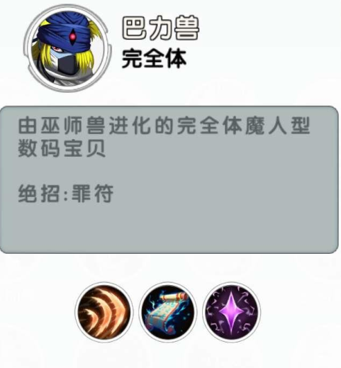解析:完全体版本粑粑,据说开二技能几乎能秒人,并且也拥有强力全体AOE大,并且较随便大招是群体AOE宠而言,它的小技能不送怒,爆发高,针对性足,在已知对手jjc位置的情况下用吸血鬼兽作为对位是个不错的选择。