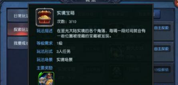 在圣光大陆实境的各个角落,每隔一段时间就会有一些位置被埋藏的宝箱被发现。大家可以在实境中找找看,实境宝箱上面写着是3人任务,但是貌似一个人也能开,不过遇到几率就呵呵了。