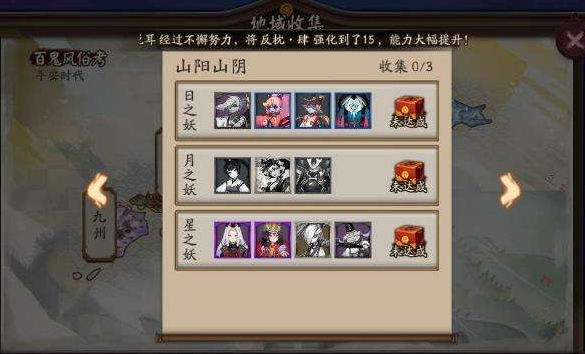 2、山阳山阴-星之妖:黑童子+白童子+一目连+惠比寿 ,奖励:御行达摩x1