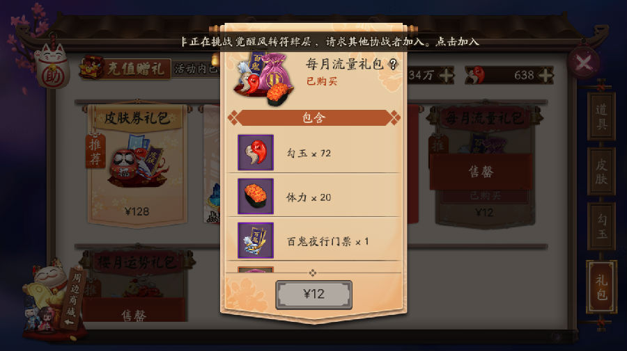阴阳师的官方消息是阴阳师的电信定向流量包是暂时只对ios 4G电信用户享受,并且(4月30日清零)