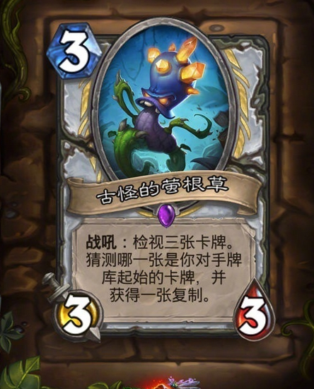 炉石传说古怪的萤根草怎么样,勇闯安戈洛史诗紫卡古怪的萤根草效果分析,炉石传说3月24日王师傅公布了勇闯安戈洛史诗紫卡古怪的萤根草,古怪的萤根草集集站场,侦查牌库,连连看,猜硬币,偷牌于一身,下面带来炉石传说勇闯安戈洛史诗紫卡古怪的萤根草效果分析。
