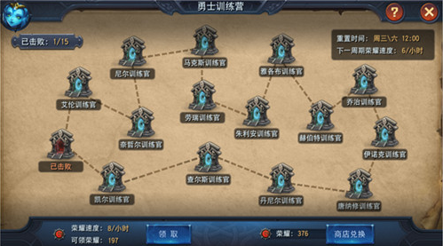 战胜训练官,将会获得丰厚的荣耀点回报,荣耀点可以在荣耀商店兑换所有英雄的魂石,提高英雄的觉醒等级。