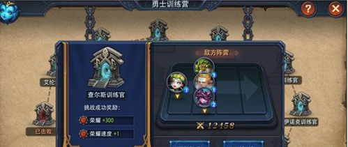 一个考量玩家对英雄、对阵容的理解的地方,通过勇士训练营,大家可以接触到各种各样的阵容,包括正常的和不正常的,要通过各位训练官的考验,大家必须对自己手上的英雄有深刻的理解,组成合理的克制阵容,战胜对手。