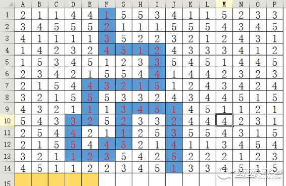 标蓝色是走到最下面的走法,金木水火土用12345表示。