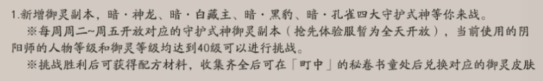 御灵守护副本开放时间:每周周二~周五开放对应的守护式神御灵副本