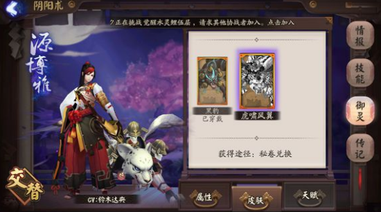 阴阳师源博雅御灵皮肤虎啸风翼怎么获得