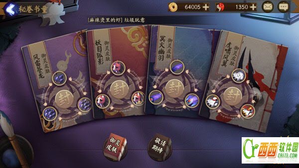 3、点击可以看到,包括了风雷苍龙、妖目狐影、冥火幽羽、虎啸风翼四大御灵新皮肤