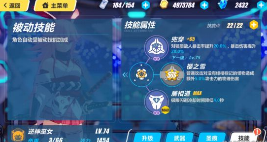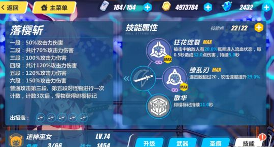 樱之雪:普通攻击对没有绯樱标记的怪物造成外X攻击力的物理伤害(SSS接解锁)