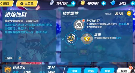 刃返:一闪清除绯樱标记后释放刃返,造成150%+X攻击力的物理伤害。
