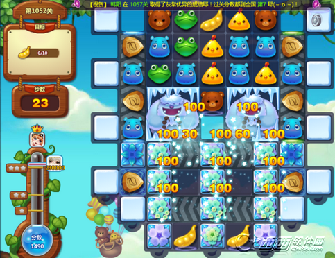 开心消消乐1052关收集金豆荚,但是由于有雪怪和魔法师的阻碍,金豆荚很难掉下来。开心消消乐1052关怎么过,下面就和西西来看看1052关三星通关攻略,希望能帮到大家。