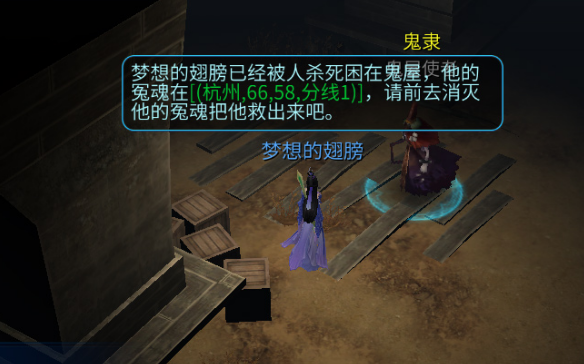 玩家可以前往[鬼隶(鬼屋76,64)]选择向世界频道或者帮会频道求助,将自己的冤魂坐标发送在对应频道中,冤魂被其他玩家消灭之后才能离开鬼屋,否则需要花费10万银两或者等待副本结束(30分钟)后离开。