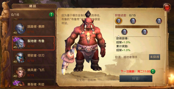 首领级别狩猎BOSS
