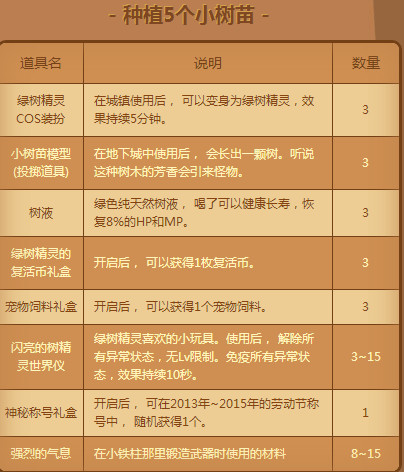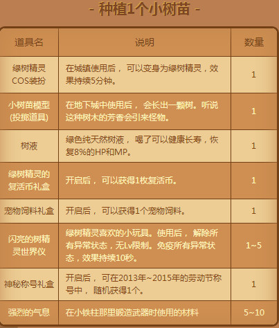 1.活动期间,角色每天登陆时可以以邮件形式获得1个【小树苗】