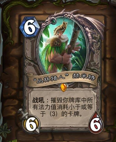 炉石传说丛林猎人赫米特怎么样,勇闯安戈洛中立橙卡林猎人赫米特介绍,炉石传说3月28日安德罗妮公布了勇闯安戈洛一张中立橙卡丛林猎人赫米特,丛林猎人赫米特效果完美和猎人相悖,不过有压缩牌库的作用。下面带来炉石传说勇闯安戈洛中立橙卡林猎人赫米特介绍。