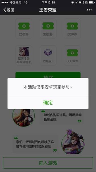 王者荣耀免费送点券活动在哪里?苹果用户能免费领取点券吗?昨天,小编偶然打开微信的游戏,居然发现王者荣耀在免费送王者荣耀点券。欲哭无泪的是,此活动只有安卓用户才能免费领取!那么王者荣耀点券怎么领取怎么使用呢?一起来看看吧!