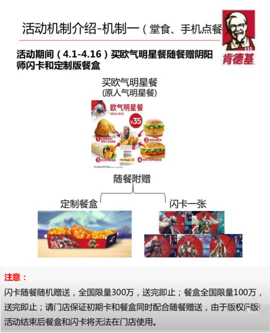 阴阳师现已加入肯德基豪华午餐,下面带来4月份的肯德基最新活动,包括了阴阳师限量闪卡和定制版餐盒,下面来看看分别有哪些活动奖励和答疑。