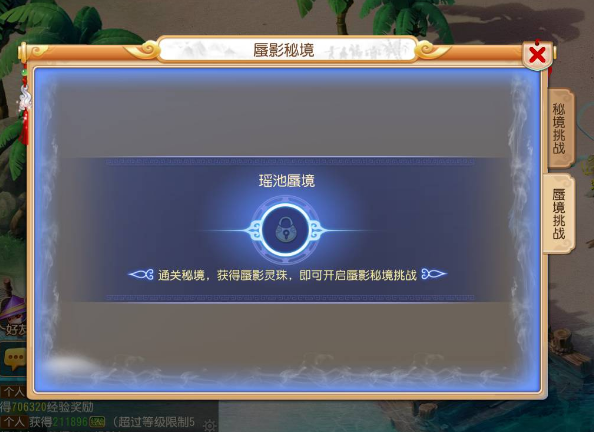 玩家完整通关当前等级段秘境后,将获得进入蜃影秘境所需的蜃影秘珠,使用秘珠可开启本周的蜃影秘境挑战。如果在维护前已经通关了当日瑶池秘境,那么再次击杀最后一关即可获得蜃影秘珠。