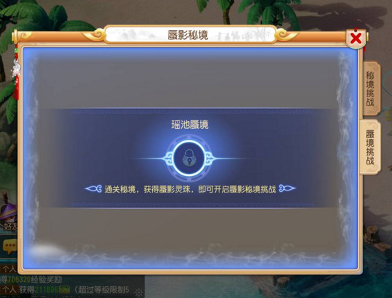 玩家每周第一次完整通关某条线路的秘境挑战之后,如果当前没有开启蜃影秘境的挑战,那么获得一个一层的蜃影秘珠,使用蜃影秘珠即可开启蜃影秘境挑战。