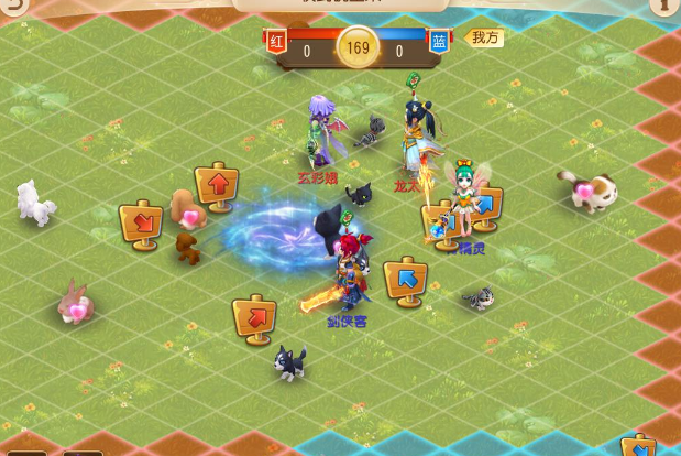 2.地图中间会不停走出各种小动物,小动物踩到地上的方向卡会改变移动方向。