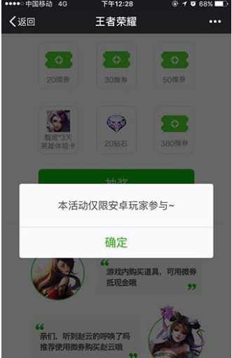 首页 → 安卓游戏资讯 → 安卓游戏攻略 → 王者荣耀微信领取点劵失败怎么回事 信领取点劵失败原因介绍