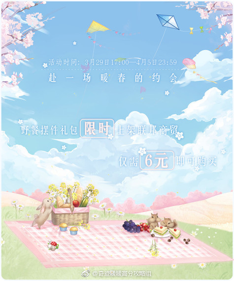 野餐摆件礼包上线时间:3月29日17:00-4月5日23:59