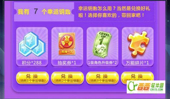 幸运钥匙可兑换十连抽奖券,积分、升级券或者万能碎片。