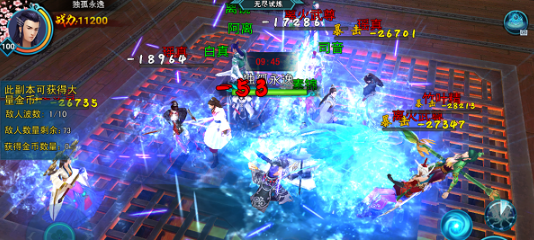 进入副本后,界面中间会出现红色数字的倒计时,界面左边可以看到总共有几波敌人,敌人剩余数量,获得金币数量,在规定的时间内会出现大批量的敌人,玩家需要将敌人全部击败。