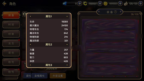 我们通过龙玉来计算一点智力能够获得的收益效果,进而分析魔攻强化和智力强化的选择。首先图一为没有镶嵌一级智慧龙玉的属性值,此时我们的魔法攻击为642,最大魔法24100,魔法防御321,智力803。图二为镶嵌一级智慧龙玉后的属性值,魔法攻击提高到650,最大魔法24400,魔法防御325,智力813。通过两个属性对比我们可以发现,提高10点智力后魔法攻击增加了8点,最大魔法增加300点,魔法防御增加了4点。那么也就是说1点智力可以提高0.8魔法攻击,30最大魔法及0.4魔法防御。