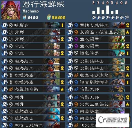 这个体系的单卡其实大家都很熟悉,吹嘘海盗以及船工起手都可以留,1费裸上船工完全可以接受的。然后船工以及帕奇斯在造范的时候一定要注意,如果没有匕首就暗影步回手帕奇斯,有匕首就可以出船工来刷范。这个体系整体就是为了前期的站场以及给冷血提供目标,起手留1到2张海盗即可。