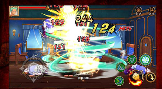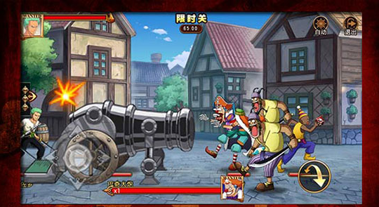 当然也少不了多经典剧情的重现,比如红发断臂救路飞、敌营夺刀得佐罗……等剧情将会以关卡的形式让你重温原版的桥段,一幕又一幕的经典回忆,将会实时体验。同时在打斗的细节上也是还原得非常到位的,比如游戏过程中小丑巴奇战斗失败,面对被夺走的大炮,面部立马呈现出海迷熟悉的逗逼颜艺!