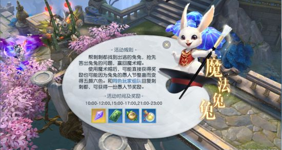 今天10点至12点、15点至17点、21点至23点三个时段中,每五分钟都会有一波魔法兔兔出现在世界各地。天命者们只要找到兔兔并在10秒内答对它的问题就能拿回魔术帽——如果超时或答错了,这只兔兔就不会再搭理天命者,需要寻找其他兔兔咯。