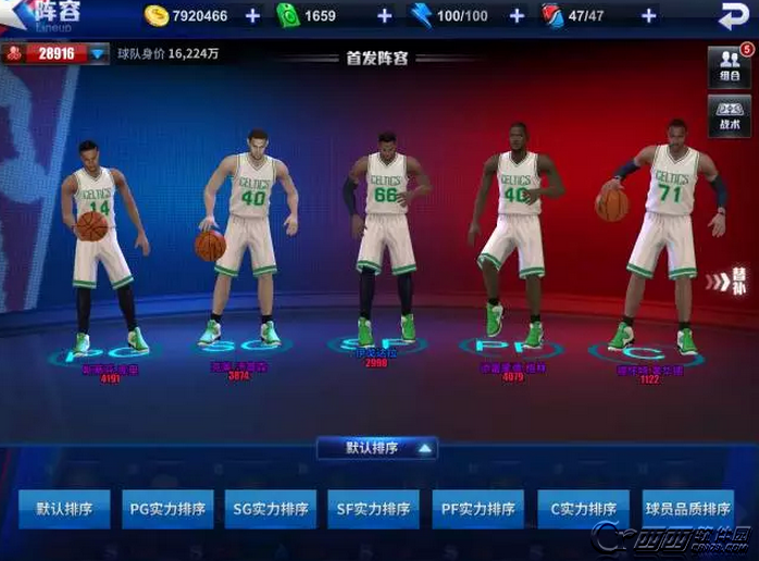 该阵容围绕着大小加索尔以及灰熊和马刺的主要球员来搭配,是一套性价比极高的阵容。因为这套阵容可以触发9个组合效果,并且只有3个紫色球员所以相对来说球员获取比较容易,发展培养相对较为容易,可以说是平民玩家的首选阵容了。当然如果你对某一球队有着特殊的情怀,也可以全都用一个球队的球员哦,就像凯尔特人就有这不错的十人组。