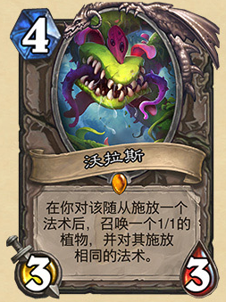 炉石传说沃拉斯怎么样,勇闯安戈洛新橙卡沃拉斯效果分析,炉石传说沃拉斯是勇闯安戈洛中立橙卡,这个造型怪异的植物,效果和苍老师有点类似,沃拉斯对于超生流和buff流卡组有着不错的搭配,那么炉石传说沃拉斯怎么样,下面带来勇闯安戈洛新橙卡沃拉斯效果分析。