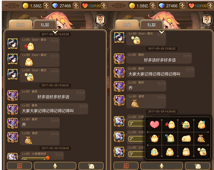 针对原有的世界频道和公会频道,《天命传说》也进行大幅度优化,玩家可以用文字或语音在频道内畅所欲言,还能更方便地添加好友,结识更多玩家,分享趣事。不仅如此,《天命传说》还别开生面地加入表情系统,让私聊、工会、多人秘境等新旧聊天变得更生动。