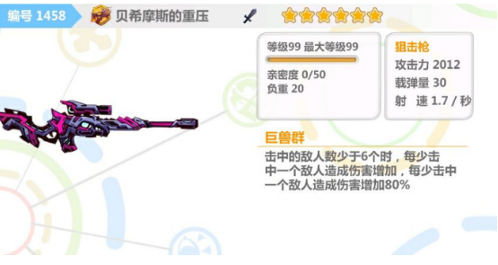 命中的敌人越少,伤害就会越高,也因此,在面对怪海时,可以发挥狙击的穿透优势(不一定指重压),在只剩下几个敌人时,发挥自身高加成的特点,打出高额输出。