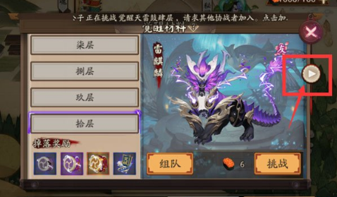 2、在御魂、觉醒10层,秘闻挑战本的8层(山兔本除外)、9层、10层界面上有如图的箭头,点击查看战斗回放